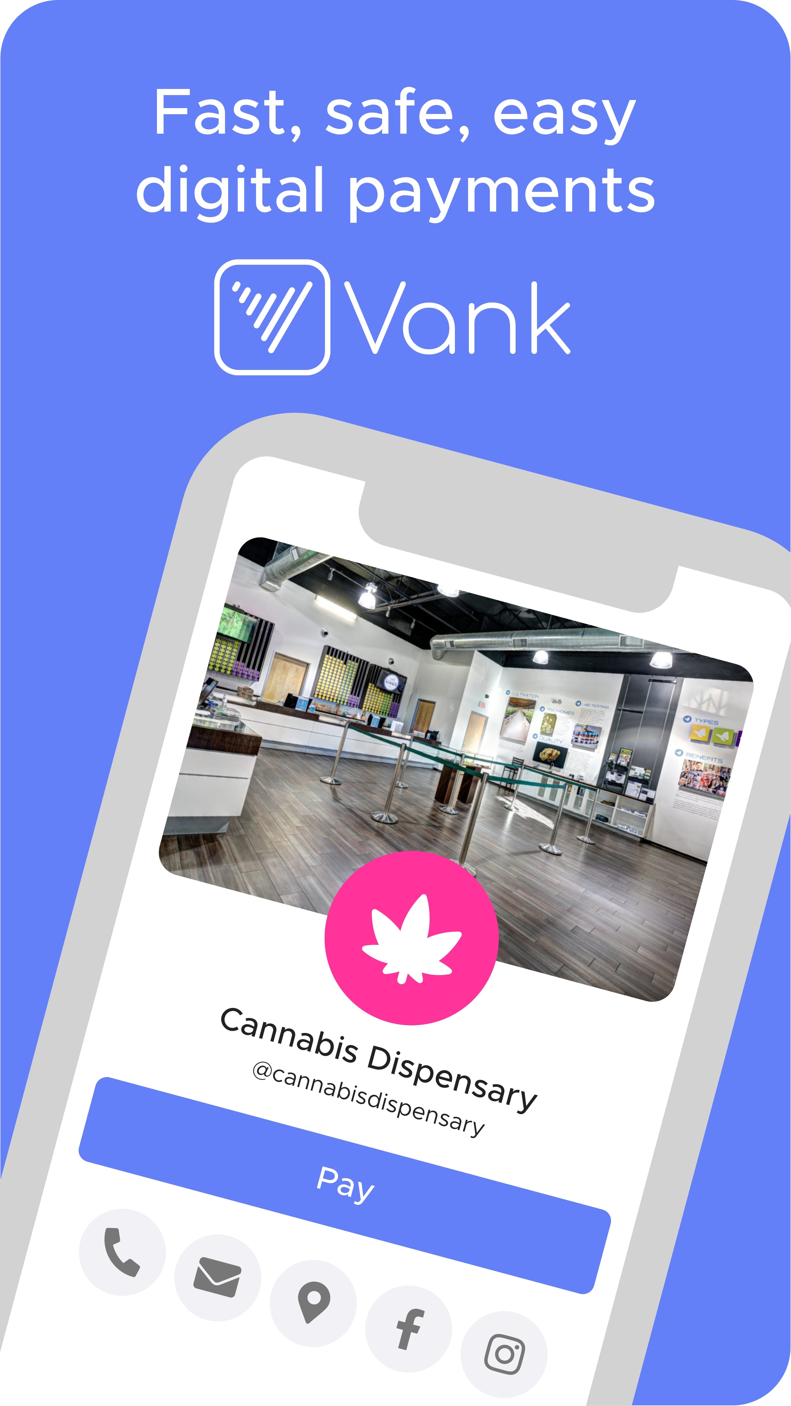 La plataforma de aplicaciones de pago de Vank se puede integrar completamente con el punto de venta del comerciante y los sistemas de semilla-a-venta (seed to sale), que los comerciantes relacionados con el cannabis medicinal tienen como requisito, lo que hace que sea rápido y fácil de pagar.