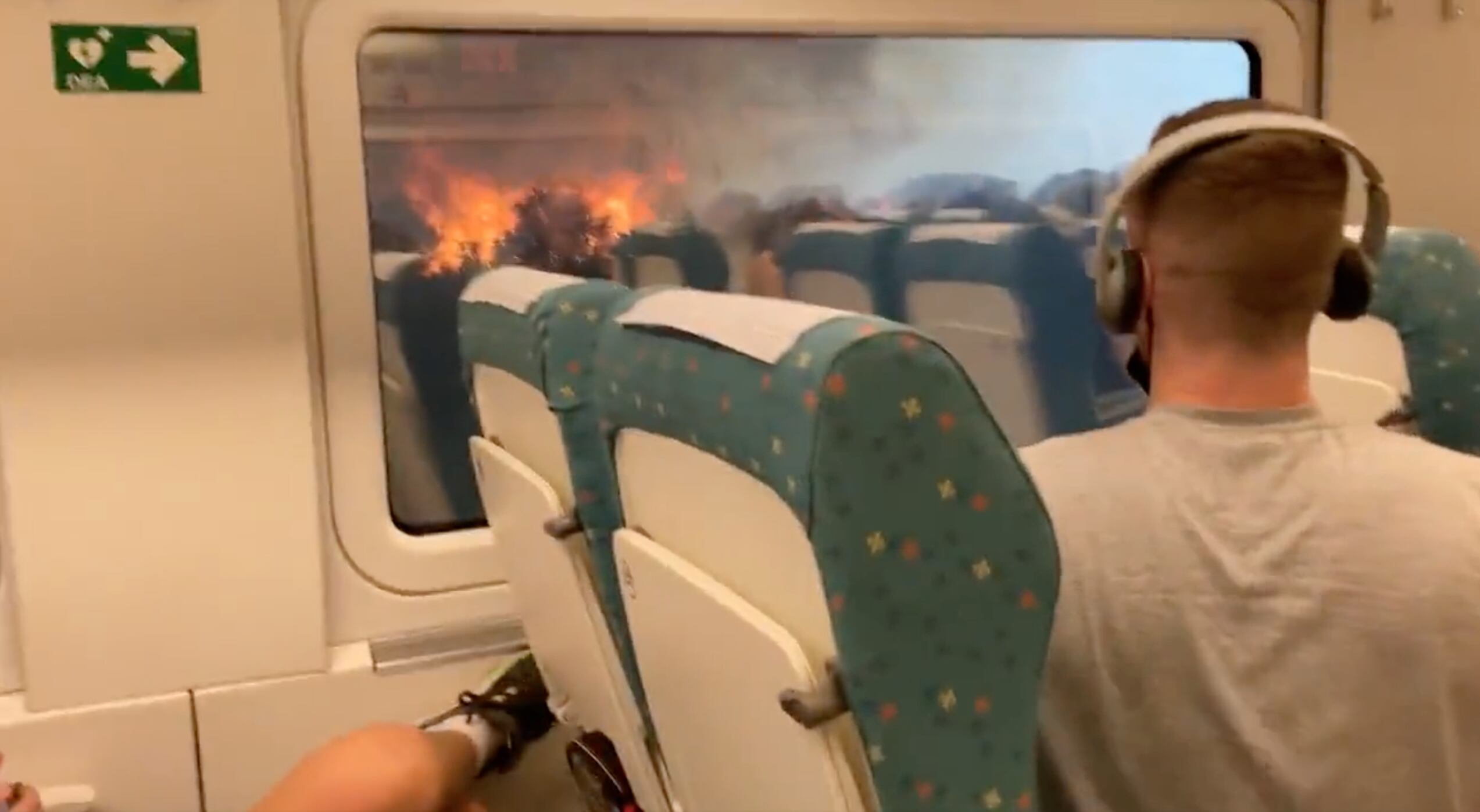 A bordo de un tren, los pasajeros observaron el momento exacto en que se consumen los pastizales por el fuego en uno de los caminos que casi alcanza al vehículo, que, aunque se vio obligado a detenerse de forma momentánea, no vio interrumpido su trayecto.