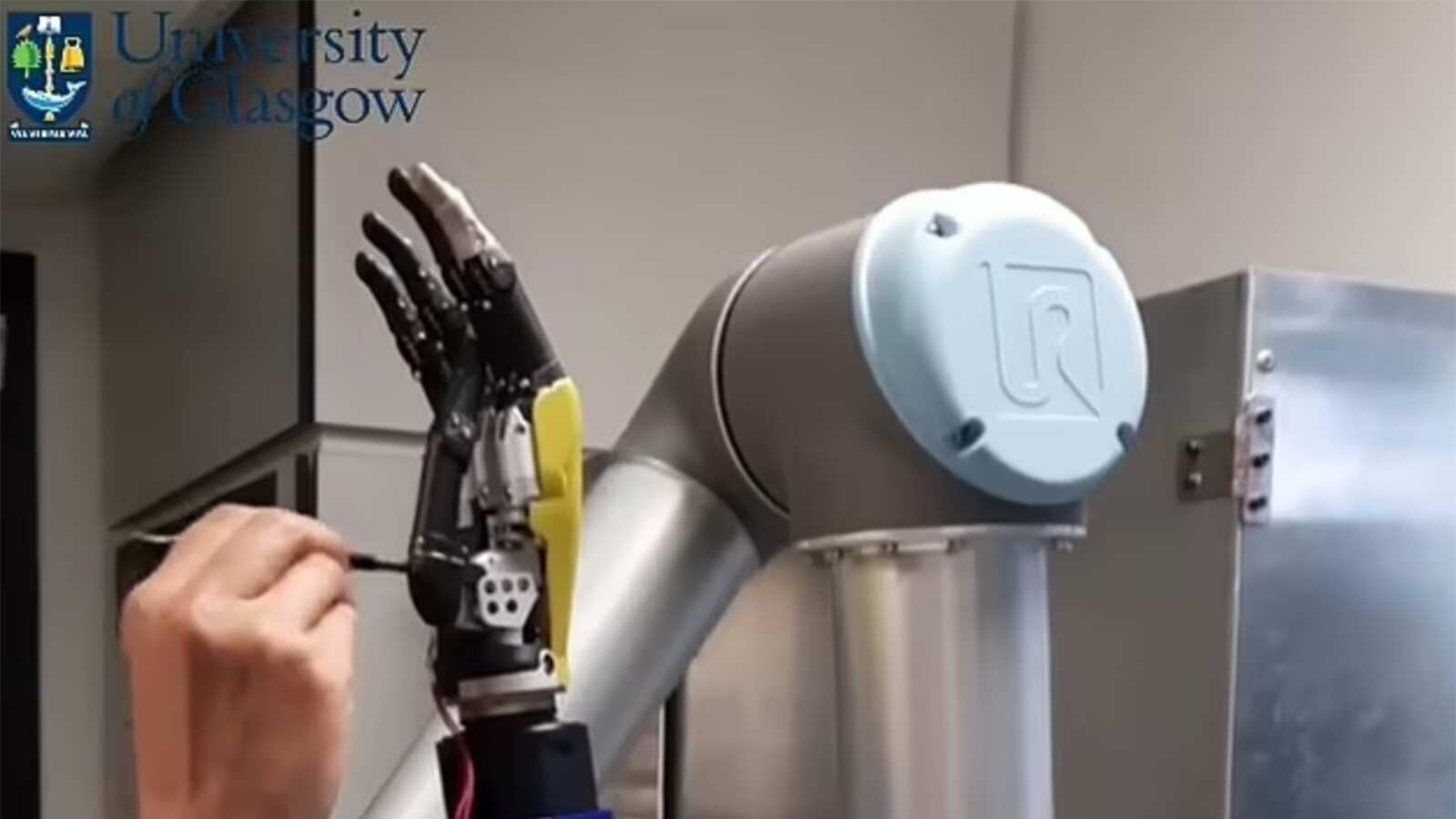 Después, los científicos del Bendable Electronics and Sensing Technologies (BEST) de la Universidad de Glasgow, dirigidos por el profesor Ravinder Dahiya, conectaron el transistor sináptico al sensor de la piel en la palma de una mano robótica totalmente articulada y con forma humana.