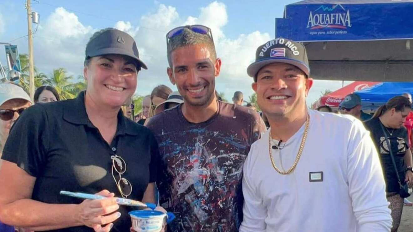 El artista Héctor Collazo, mejor conocido como Héctor PR, por su proyecto “78 Pueblos, 1 Bandera”, pintó en El Caracol Restaurant, en Dorado, la bandera #76, junto a la meteoróloga de TeleOnce, Deborah Martorell.