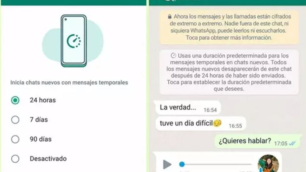 La compañía introdujo los chats temporales, que desaparecen tras un tiempo determinado (inicialmente, 7 días) en noviembre de 2020 y, un año después, integró opciones como nuevas duraciones de 24 horas y 90 días.