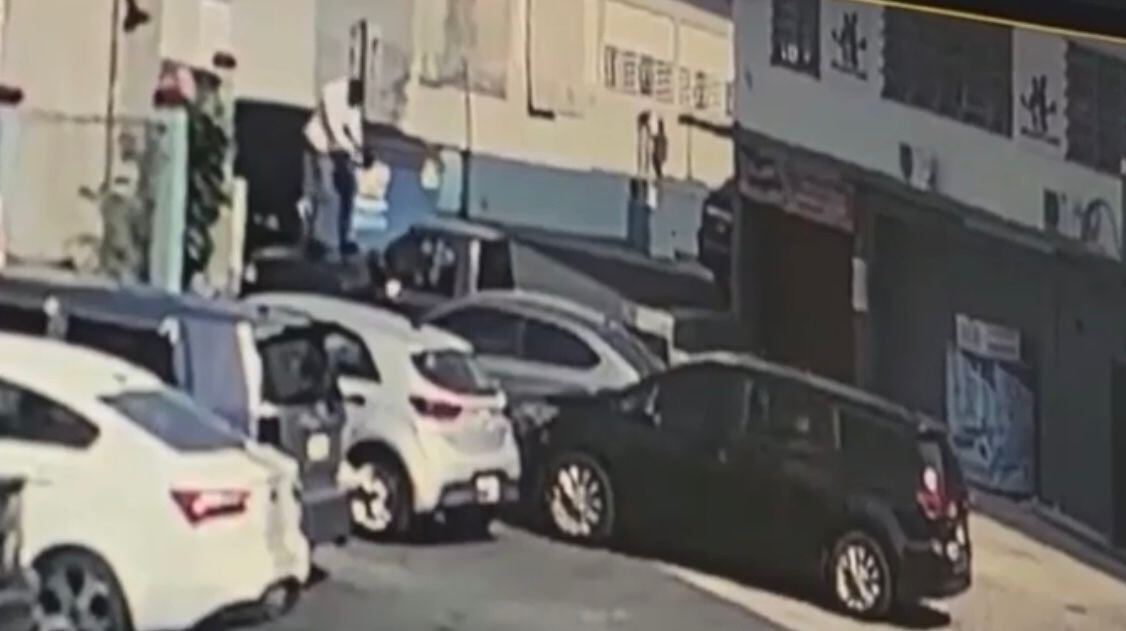 Las imágenes muestras cómo dos individuos encapuchados se bajan de un auto color negro y comienzan a disparar contra el vehículo en el que se encontraba Rodríguez Báez. Los sujetos regresaron al auto y se fueron de la escena.