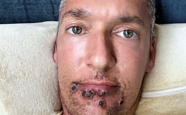 El hombre manifestó que al principio creyó tener solo un grano, sin embargo, pronto comenzó a tener sarpullido por toda su cara. Tiene ocho lesiones diferentes en el mentón, e incluso una en la boca.