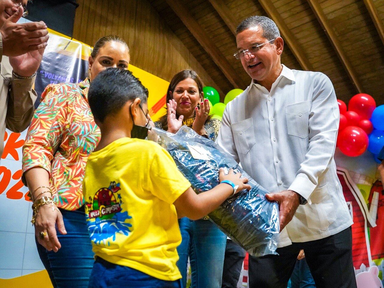 En preparación al inicio del curso escolar 2022-2023, el gobernador de Puerto Rico, Pedro R. Pierluisi y la secretaria del Departamento de la Familia (DF), Carmen Ana González Magaz, entregaron hoy mochilas con material y artículos educativos a estudiantes menores de edad que están bajo la custodia de la Administración Auxiliar de Cuidado Sustituto y Adopción de la Administración de Familias y Niños (ADFAN).