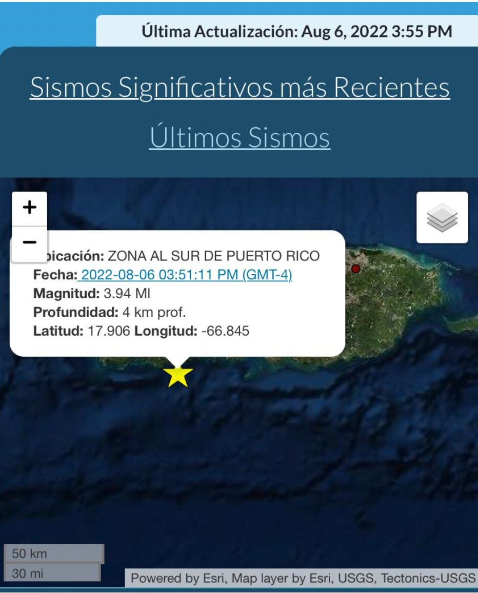 Dos temblores de tierra se produjeron esta tarde en la zona sur de la Isla, confirmó la Red Sísmica de Puerto Rico en su cuenta de Twitter.