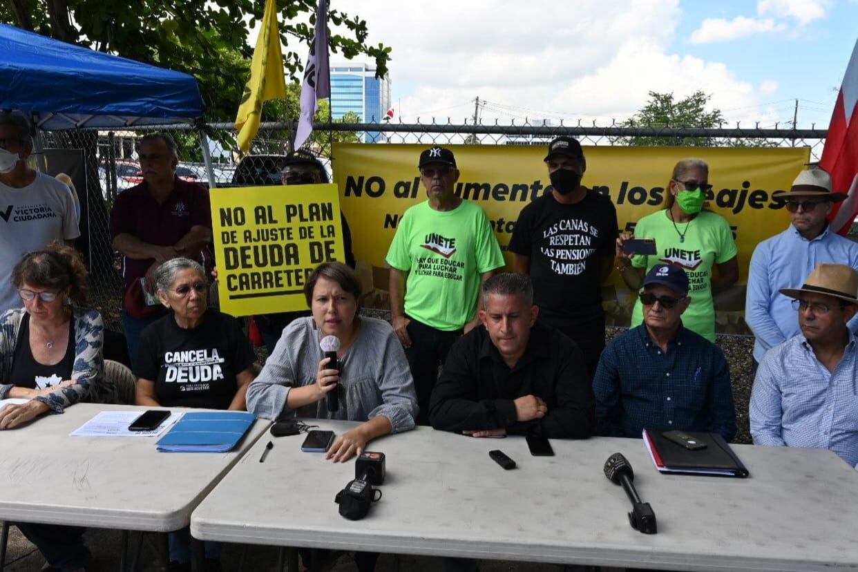 Mientras la jueza federal Laura T. Swain preside la vista de confirmación del Plan de Ajuste de la Deuda de la Autoridad de Carreteras y Transportación, una coalición de organizaciones protestó a las afueras del Tribunal Federal contra el aumento en peajes, multas y privatización de las autopistas que el plan exige como garantía para el pago de la deuda.