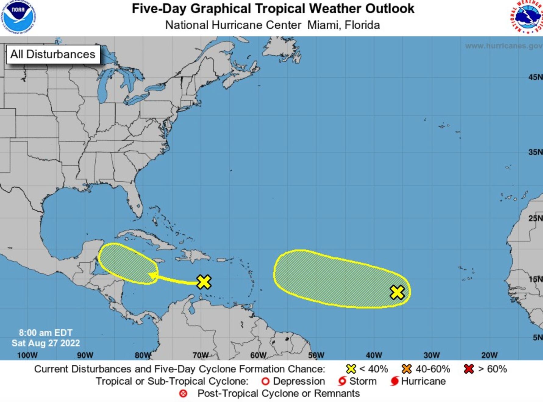 El Centro Nacional de Huracanes (CNH) continúa vigilando una onda tropical, localizada sobre el centro del océano Atlántico, que tiene un 30% de posibilidad de desarrollo ciclónico en los próximos cinco días.