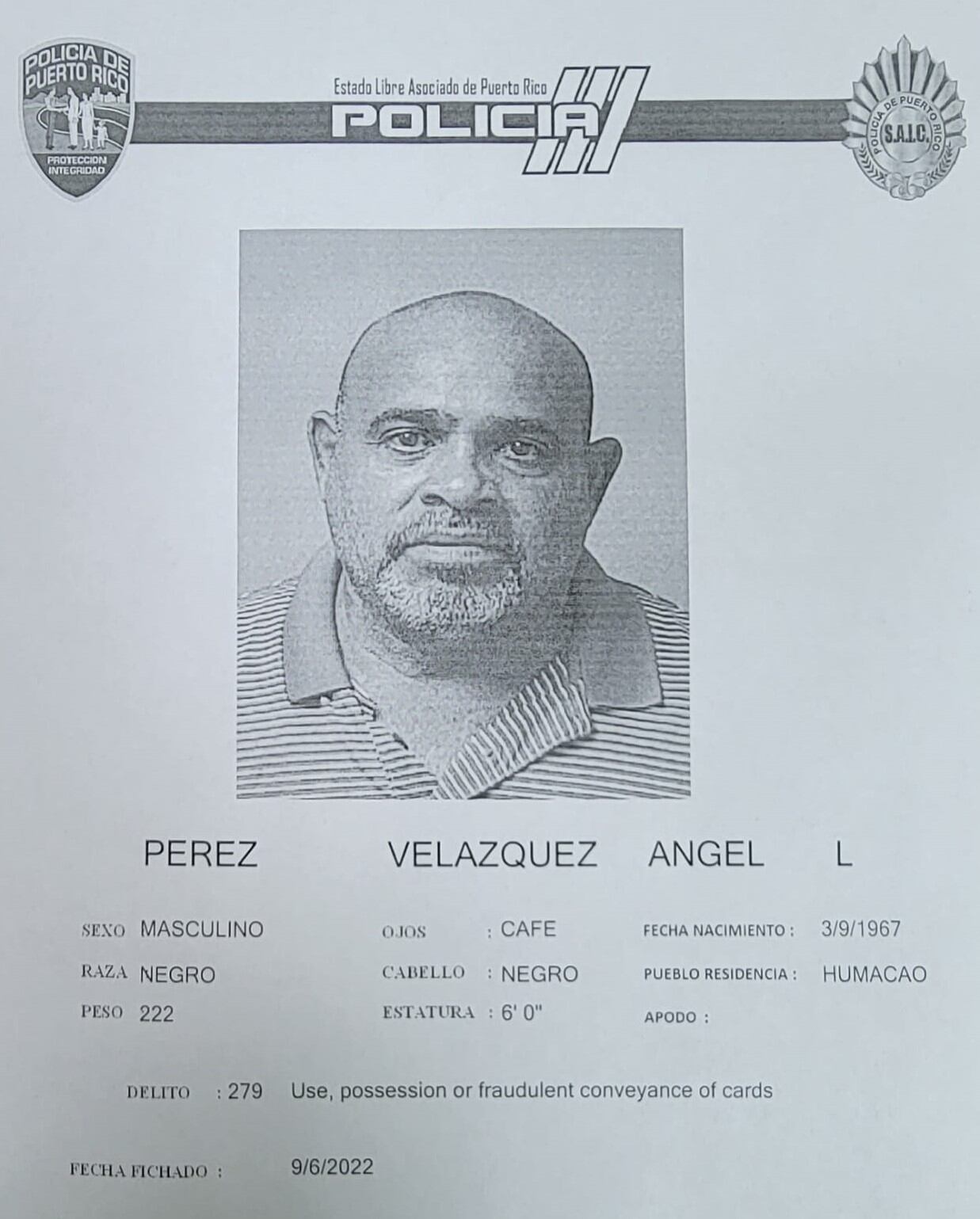 Según las autoridades, contra Pérez Velázquez pesaba una orden de arresto por violación al artículo 204 (Fraude en la ejecución de obras) del Código Penal de Puerto Rico, con una fianza global de $100 mil, expedida por la juez Jeannette Pietri del Tribunal de Humacao.