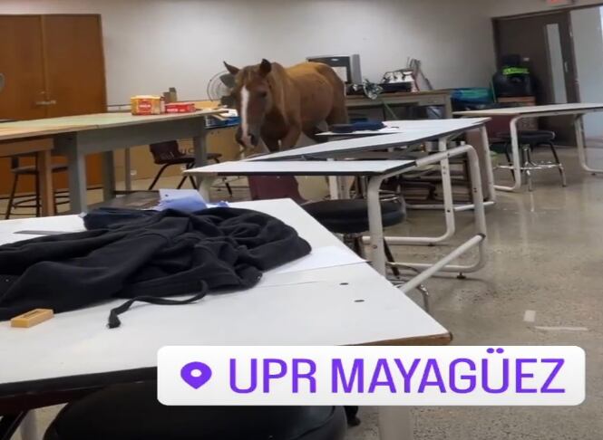 Caballo entra a un salón en la UPR de Mayagüez. Mira las fotos publicadas en las redes sociales: