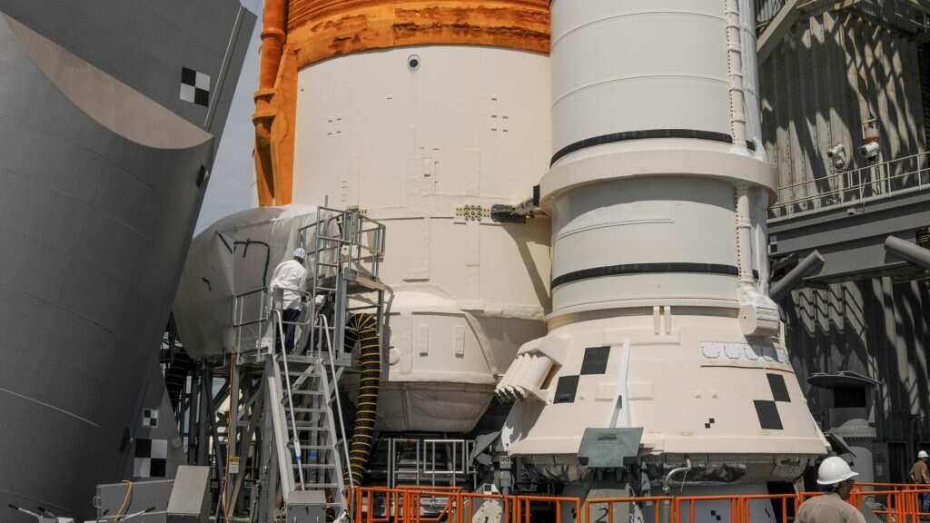 Los ingenieros están desarrollando trabajos de sustitución del sellado de la línea de alimentación del propelente al cohete. El cohete SLS y la nave espacial Orion están en buenas condiciones mientras permanecen en la plataforma de lanzamiento a la espera de su primer vuelo, sin tripulación, y que durante 42 días protagonizará un viaje de ida y vuelta a la órbita lunar.