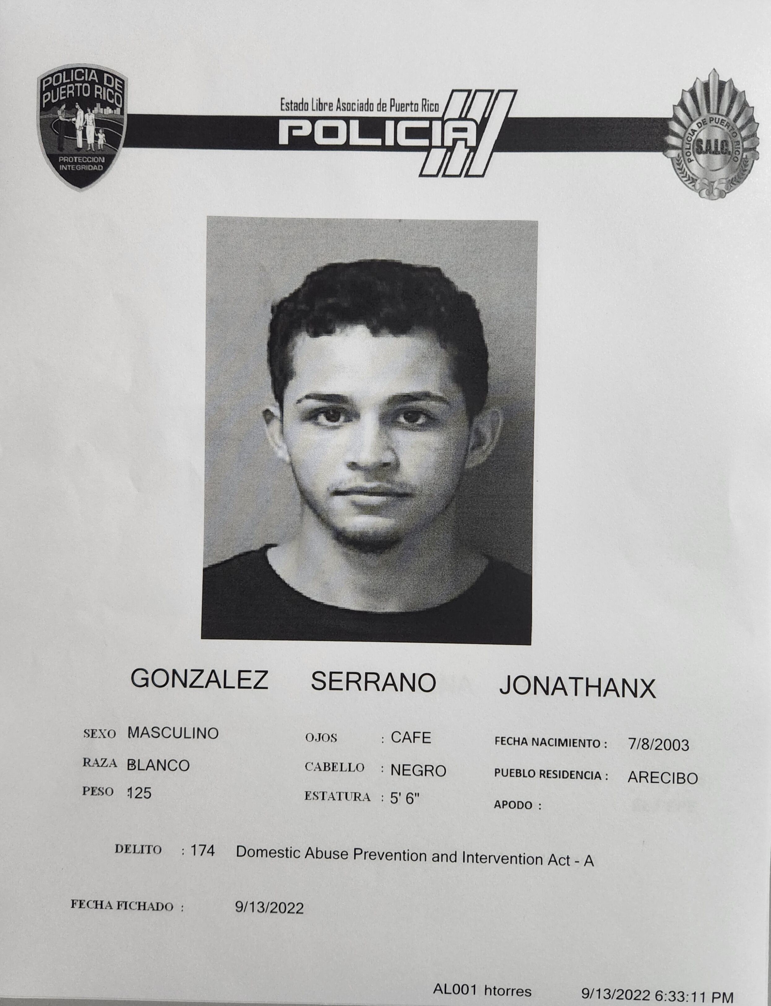 En el día de hoy, martes, radican cargo por violencia doméstica contra Jonathan X. González Serrano, de 19 años, residente del pueblo de Arecibo.