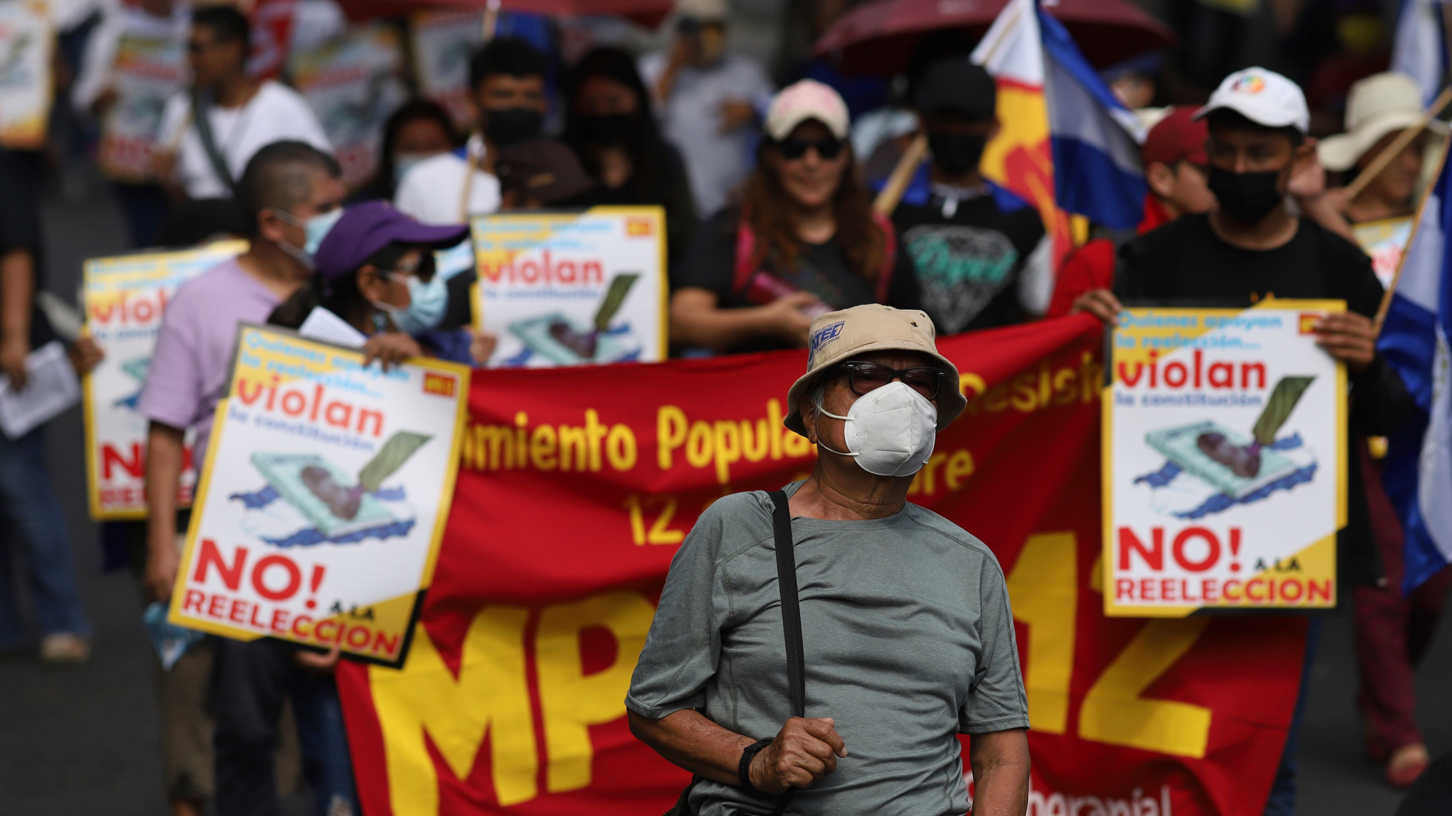 Manifestantes antigubernamentales opuestos a la reelección marchan el Día de la Independencia, el jueves 15 de septiembre de 2022, en San Salvador, El Salvador. (AP Foto/Salvador Meléndez) AP (Salvador Melendez /AP)