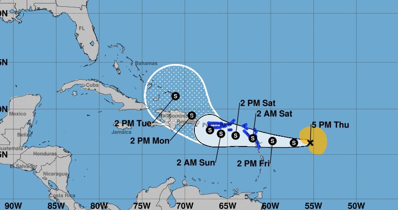 Hay aviso de tormenta tropical para las islas de Saba y San Eustaquio, San Martín, Antigua, Barbuda, San Kitts, Nevis, Montserrat y Anguila.