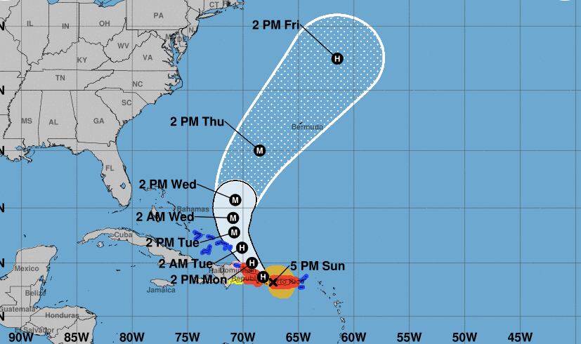 El sistema continúa moviéndose hacia el oeste y más hacia el norte dirigiéndose hacia la República Dominicana.