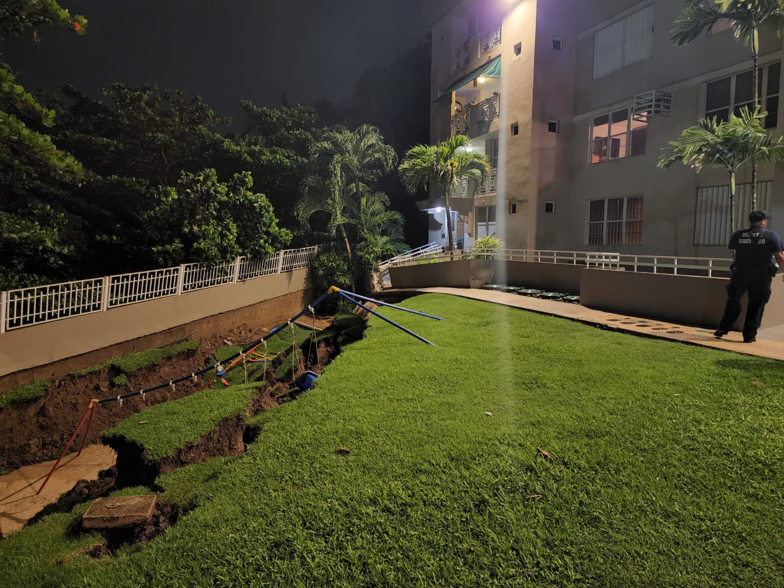 Las autoridades atienden un deslizamiento de terreno en las facilidades recreativas de un complejo de una condominio de Guaynabo.