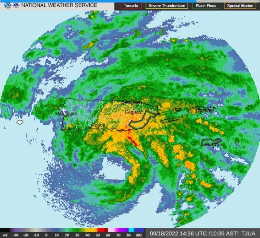 El Servicio Nacional de Meteorología informó este domingo al mediodía que la pared del ojo del huracán Fiona se acerca a la costa sur de Puerto Rico.