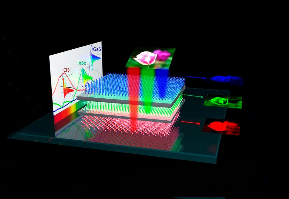 - Si amplía la pantalla de su ordenador, podrá comprobar que todos los colores son generados por las combinaciones de píxeles de color rojo, verde y azul. Esto se debe a que nuestros ojos sólo perciben estos tres colores, y es nuestro cerebro el que los combina y regenera otros colores, por ejemplo, el amarillo, el morado, el cian, etc. A estos colores primarios los llamamos RGB para abreviar. La cámara funciona según el mismo principio para el reconocimiento de los colores. Sin embargo, los sensores de rojo, verde y azul de las cámaras convencionales suelen estar dispuestos uno al lado del otro en el mismo plano y, por tanto, ocupan mucho espacio. En cambio, nuestros nuevos materiales semiconductores nos permiten apilar estos sensores rojo, verde y azul verticalmente, con lo que se ahorra mucho espacio y se reduce el tamaño de la cámara.
