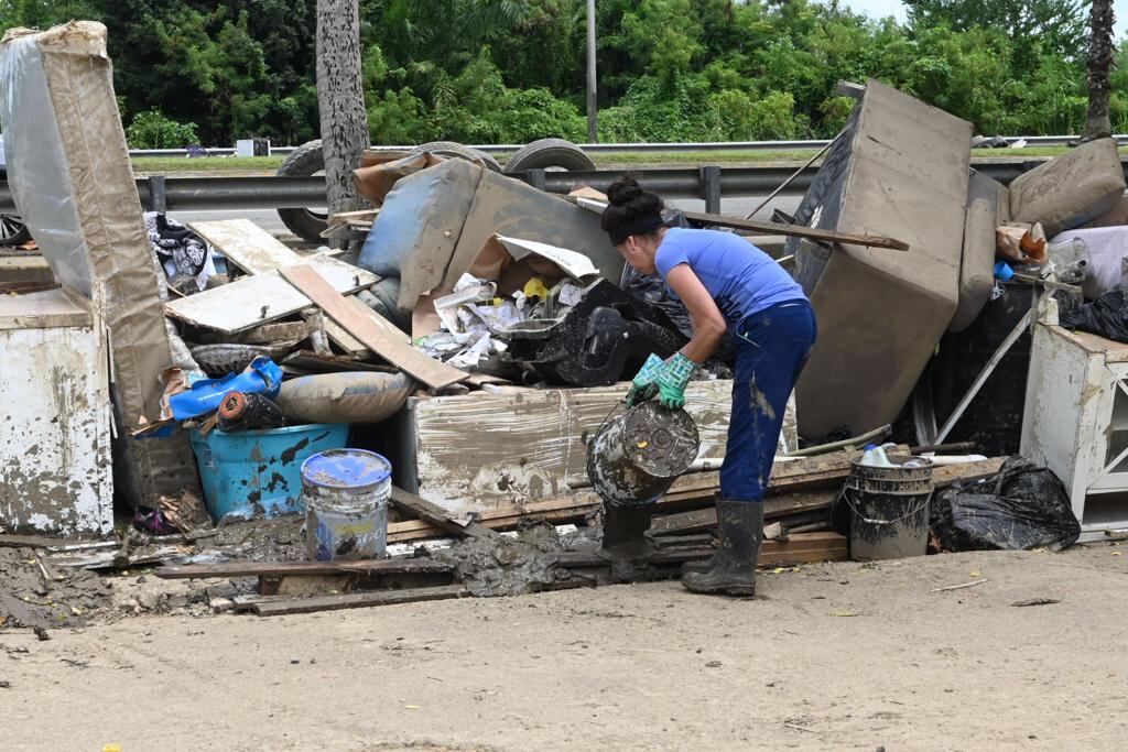 En la calle Timoteo Salas en el pueblo de Toa Baja María Pedroza, aunque no reside en el área, estuvo limpiando la casa de sus padres quienes lo perdieron todo a causa de las graves inundaciones. Su padre esta encamado y su madre tiene Alzheimer. María indicó que la única ayuda que ha recibido ha sido de parte de la comunidad.