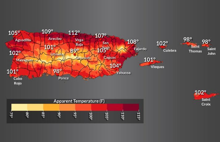 Se esperan índices de calor de 102 grados Farenheit, aunque para algunas áreas pueden reportarse temperaturas de 107 a 111 grados.