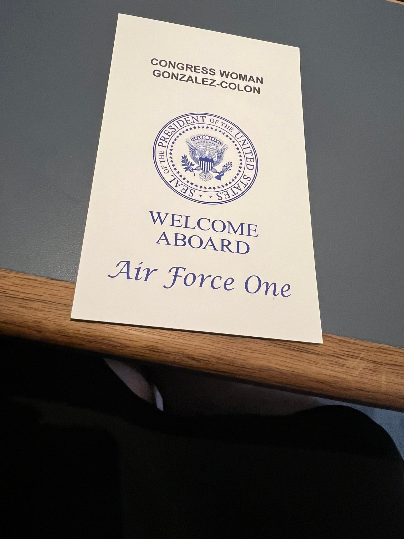 La comisionada residente en Washington, Jenniffer González Colón, compartió en horas de la noche de hoy, jueves, una foto donde mostraba estar a bordo del Air Force One.