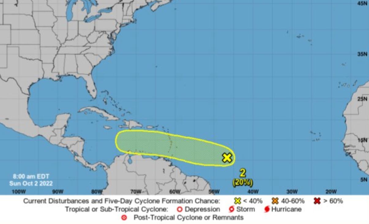 Según la agencia meteorológica, se espera que la onda tropical con baja probabilidad de formación en 2-5 días alcance la región del Caribe este fin de semana.