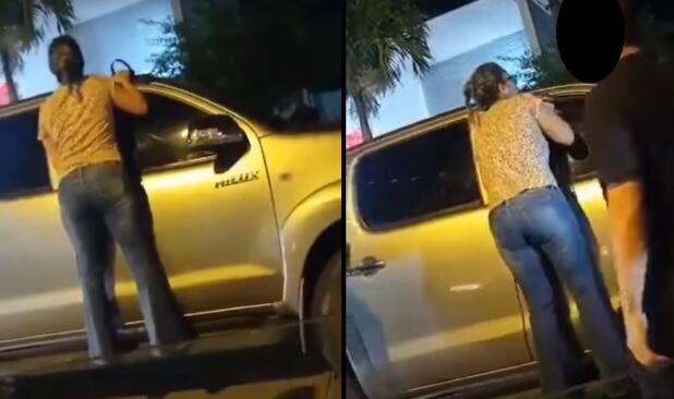 Viral: Mujer se ‘enganchó’ a la camioneta de su pareja para sacar a la amante