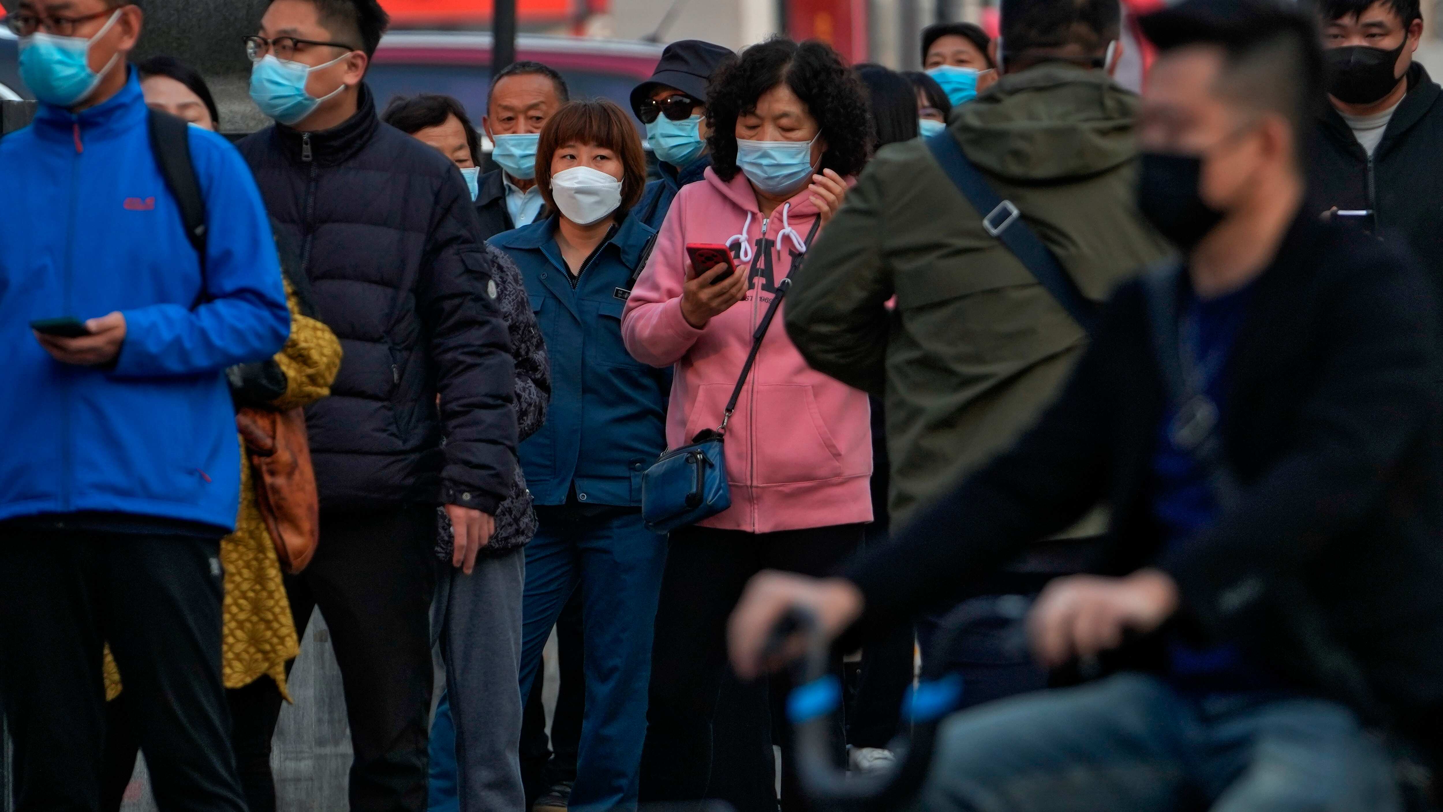 Residentes con mascarilla esperan en fila para someterse a una prueba rutinaria de detección del COVID-19, en Beijing, el 25 de octubre de 2022. (AP Foto/Andy Wong) AP (Andy Wong/AP)