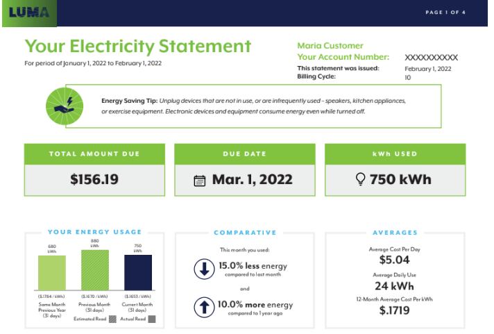 “Queremos que los clientes sepan que no se les cobrará el servicio eléctrico que no hayan consumido a causa de la tormenta. Estamos a la disposición de nuestros clientes y continuamos trabajando cada día para construir un futuro energético para Puerto Rico que esté más enfocado en el cliente”, expresó Noriette Figueroa Meléndez, directora de voz del cliente.