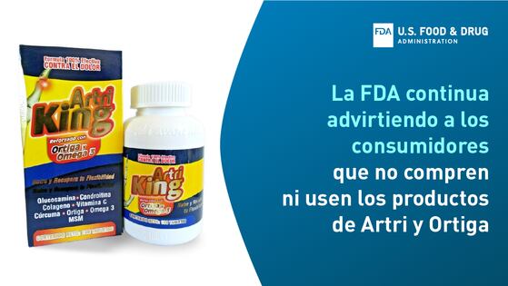 La Administración de Drogas y Alimentos (FDA, por sus siglas en inglés), advirtió el jueves a los consumidores que no compren ni usen los productos Artri u Ortiga, ya que la agencia ha recibido denuncias de eventos adversos, incluyendo toxicidad hepática y fallecimiento, asociados con el uso de Artri King y productos con nombres similares.
