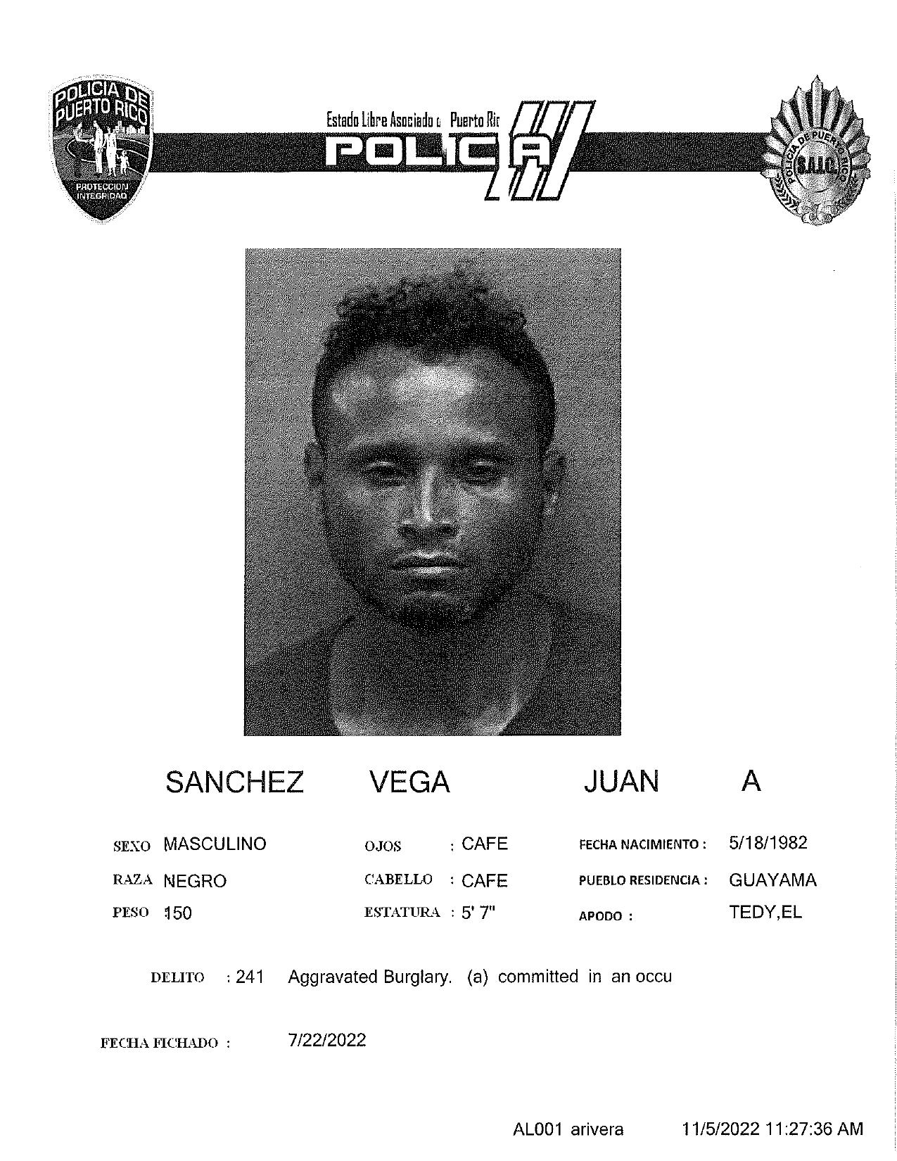 Según el informe de la policía, al imputado se le determinó pagar una fianza de $60 mil, la cual no prestó y fue ingresado a la cárcel de Ponce.