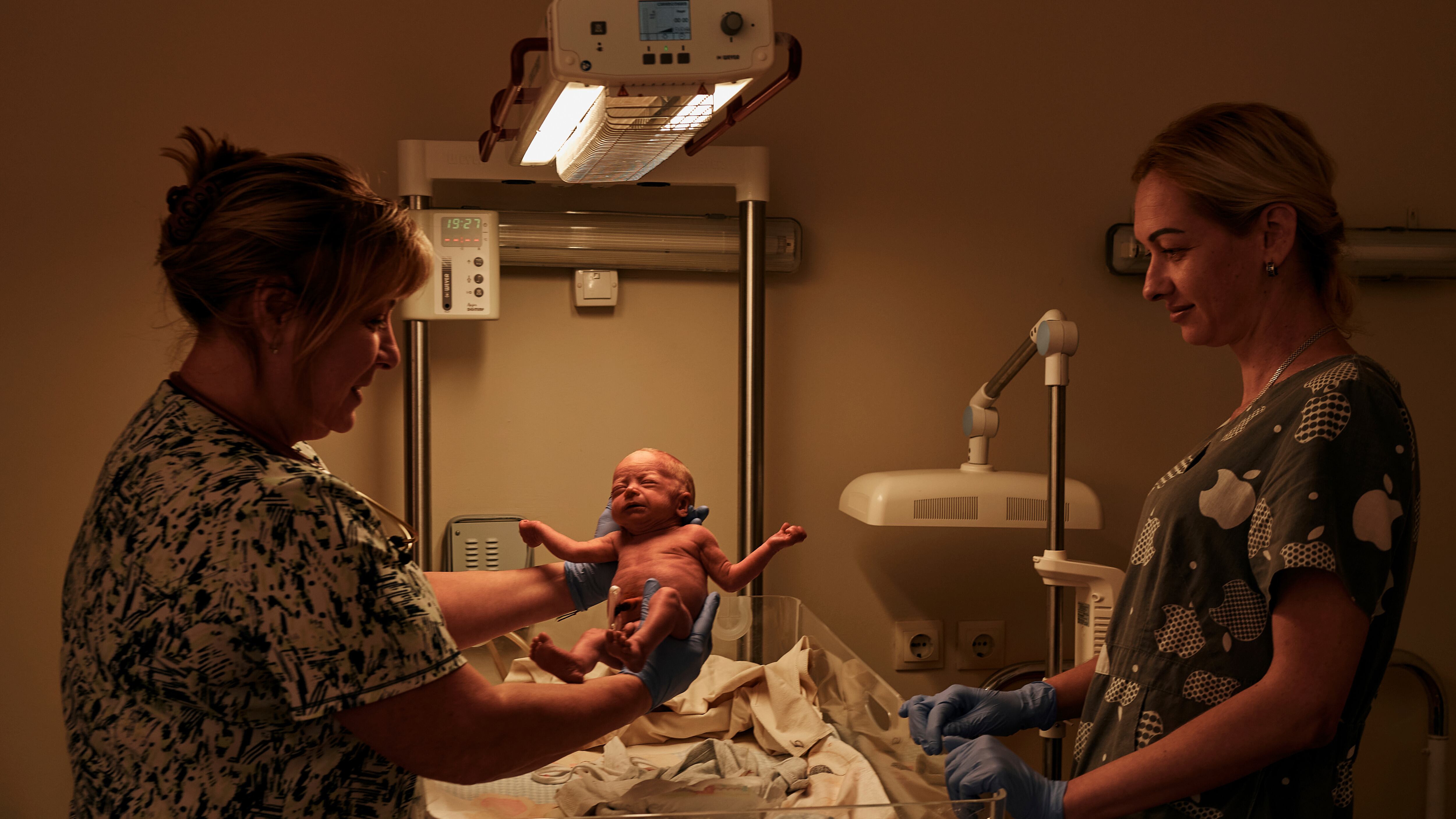 Una médica sostiene un bebé recién nacido en un hospital de la ciudad de Mukolaiv, donde hay fuertes combates contra fuerzas rusas, en Ucrania, el jueves 3 de noviembre de 2022. (AP Foto/LIBKOS) AP (LIBKOS/AP)