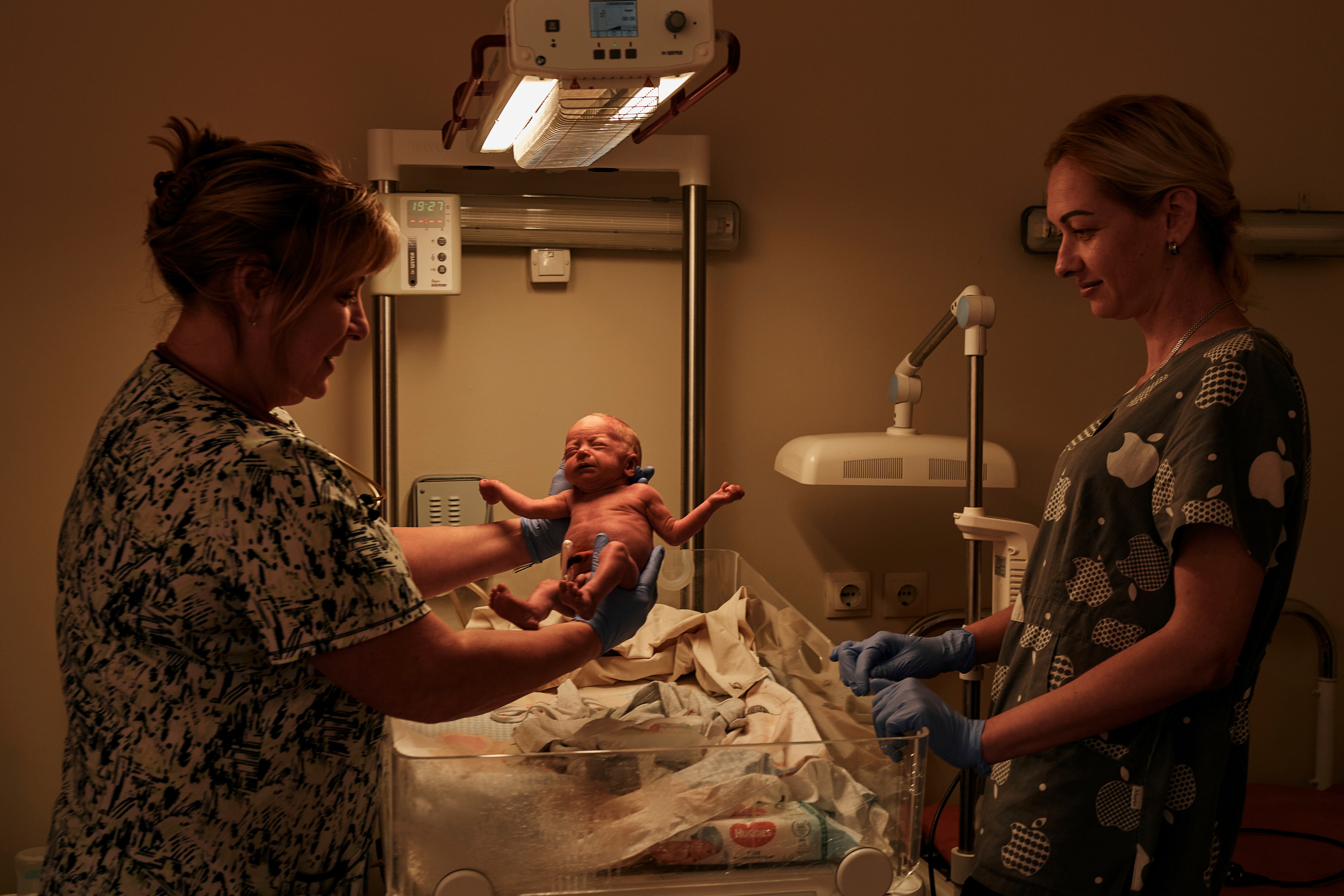Una médica sostiene un bebé recién nacido en un hospital de la ciudad de Mukolaiv, donde hay fuertes combates contra fuerzas rusas, en Ucrania, el jueves 3 de noviembre de 2022. (AP Foto/LIBKOS) AP (LIBKOS/AP)