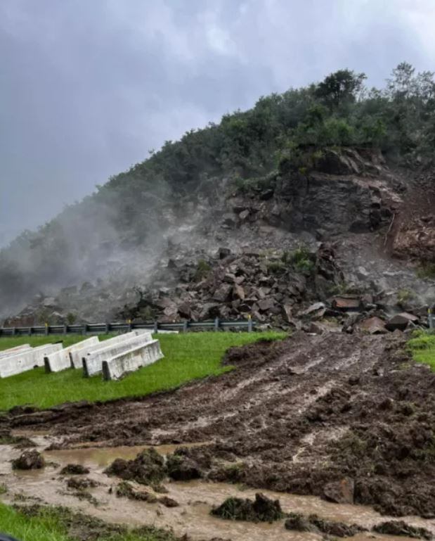 Solo queda disponible un carril temporero. Según se informó, el desprendimiento ha hecho que rocas de hasta 10′x10′ y 10′x15′ cayeran sobre el pavimento.