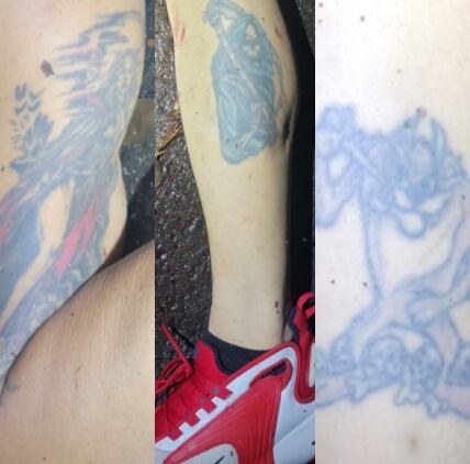 Este poseía varios tatuajes en su cuerpo, como en el área del cuello en el lado derecho el nombre de (Jorge, Lucy y una letra M), en el pecho lado derecho un tatuaje de una tela de araña, en el hombro del brazo derecho el tatuaje de una mujer, en la pierna izquierda en la pantorrilla el ángel de la muerte, en la pantorrilla de la pierna derecha una caricatura de Tazmania, en el ante brazo izquierdo tenía el nombre de Jennifer y una carabela con una hoja de marihuana.