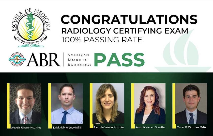 Según, el Dr. Humberto M. Guiot, decano interino de la Escuela de Medicina, expresó que “el programa de residencia médica en radiología diagnóstica de la UPR es único en Puerto Rico. Una tasa de 100% de aprobación en la certificación demuestra la excelencia académica y clínica de los egresados, la alta calidad del programa y el compromiso de la facultad”.