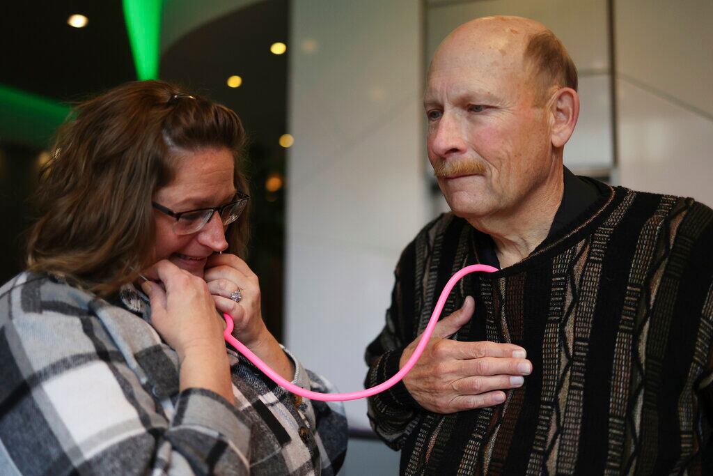 “Es casi como si volviera a abrazar a mi hija”, dijo la mujer, quien puso un estetoscopio en el pecho de Johnson. “Es asombroso”, agregó.