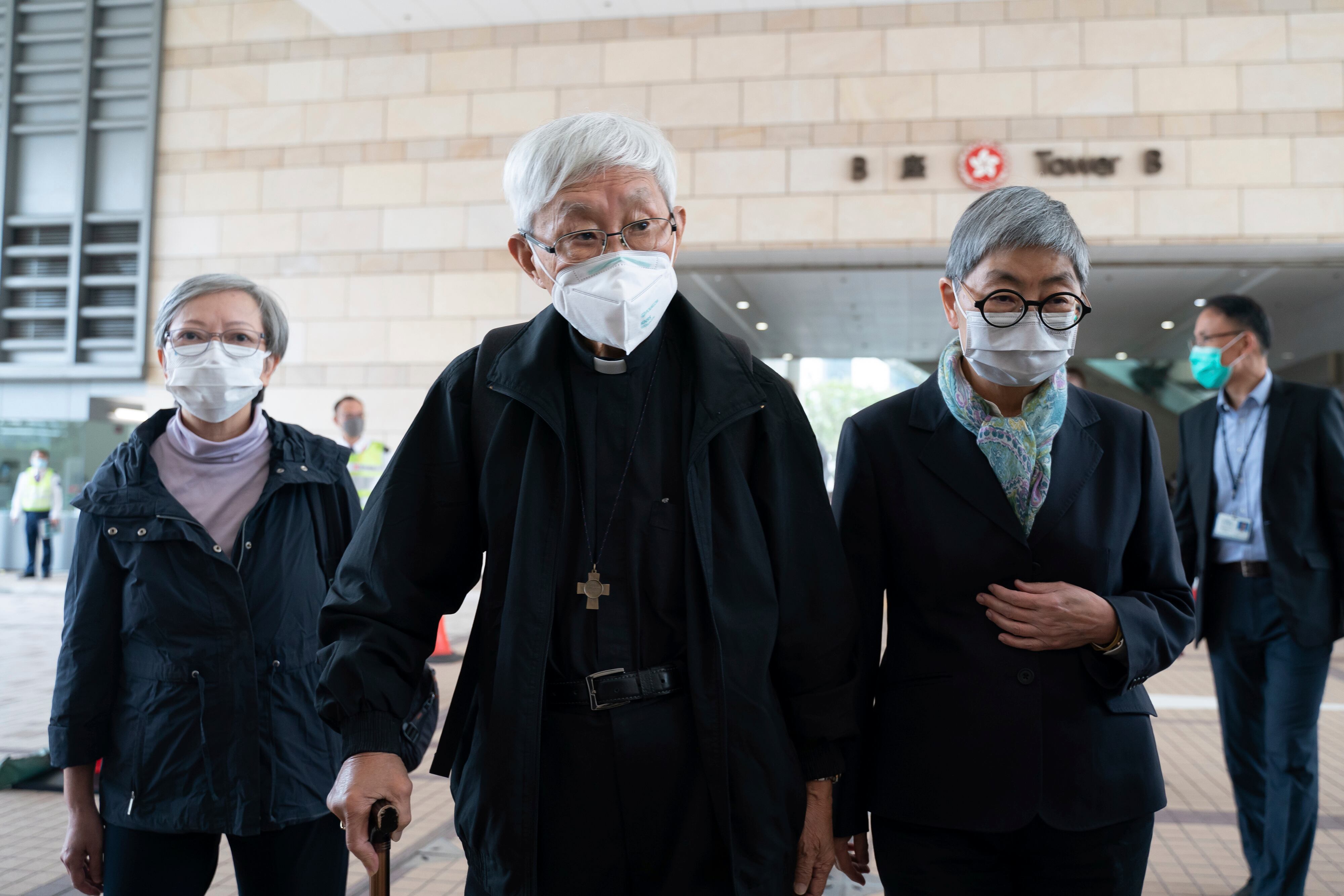 El cardenal Joseph Zen, un obispo jubilado y defensor de la democracia de la ciudad, llegó al tribunal vestido de negro y usando un bastón. Fue arrestado por primera vez en mayo bajo sospecha de colusión con fuerzas extranjeras en virtud de una Ley de Seguridad Nacional impuesta por Beijing. Su arresto conmocionó a la comunidad católica, pero el Vaticano se limitó a declarar que estaba siguiendo de cerca el desarrollo de la situación.