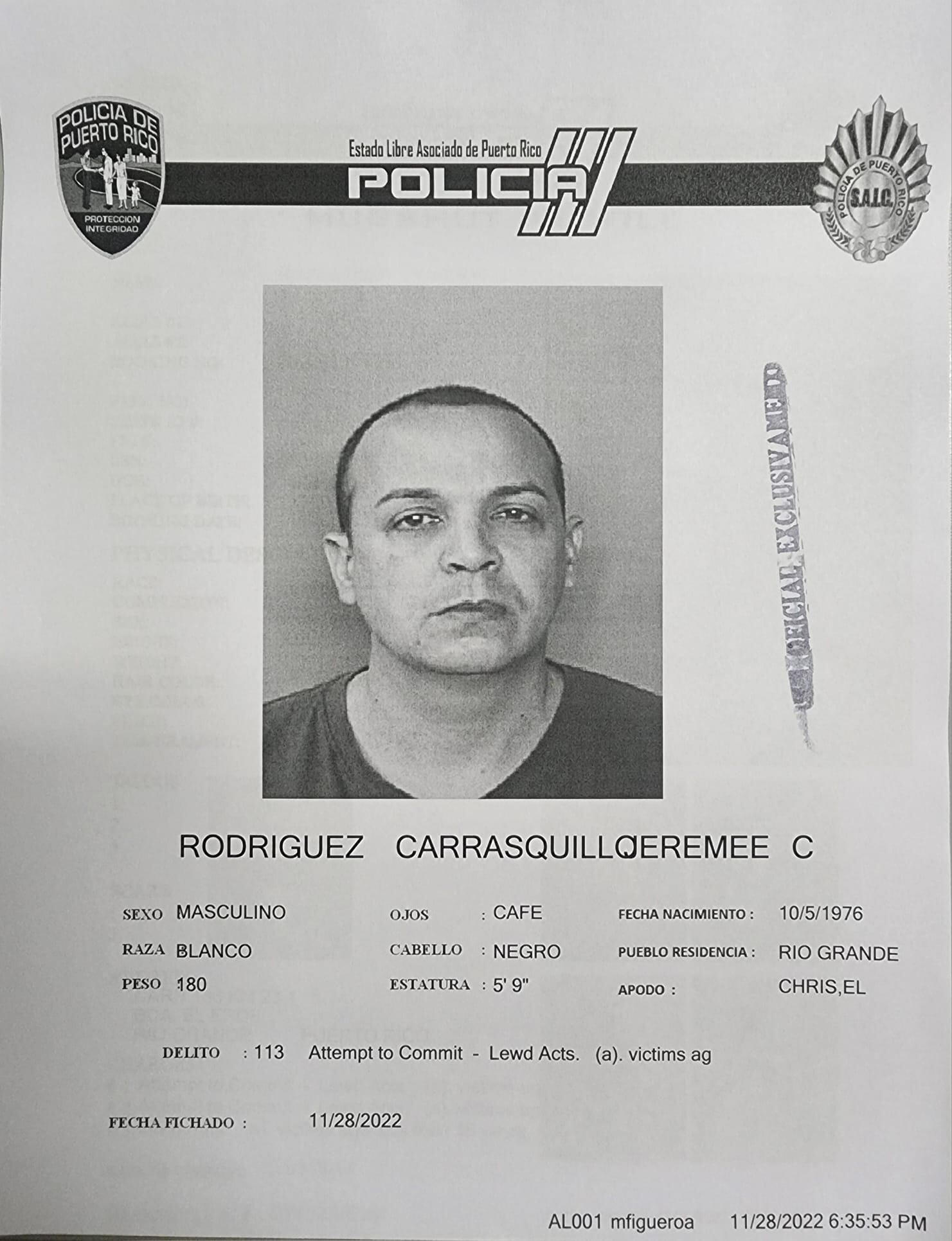 Agentes, adscritos a la División de Delitos Sexuales del CIC de San Juan, llevaron a cabo una investigación las cual culminó con la radicación de cargos contra Jeremee Chris Rodríguez Carrasquillo, de 45 años, por actos lascivos.