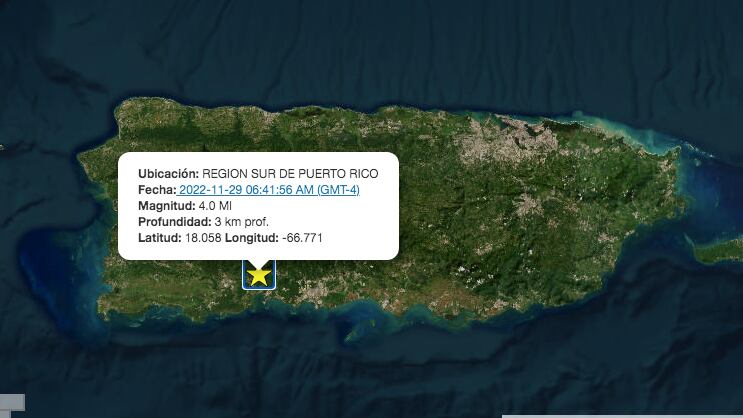 Según reporta la Red Sísmica, un sismo de magnitud preliminar de 4.0 grados se sintió en la zona sur de Puerto Rico a las 6:41 de la mañana. Posteriormente se actualizó y se indicó que el sismo fue de 4.2 grados.