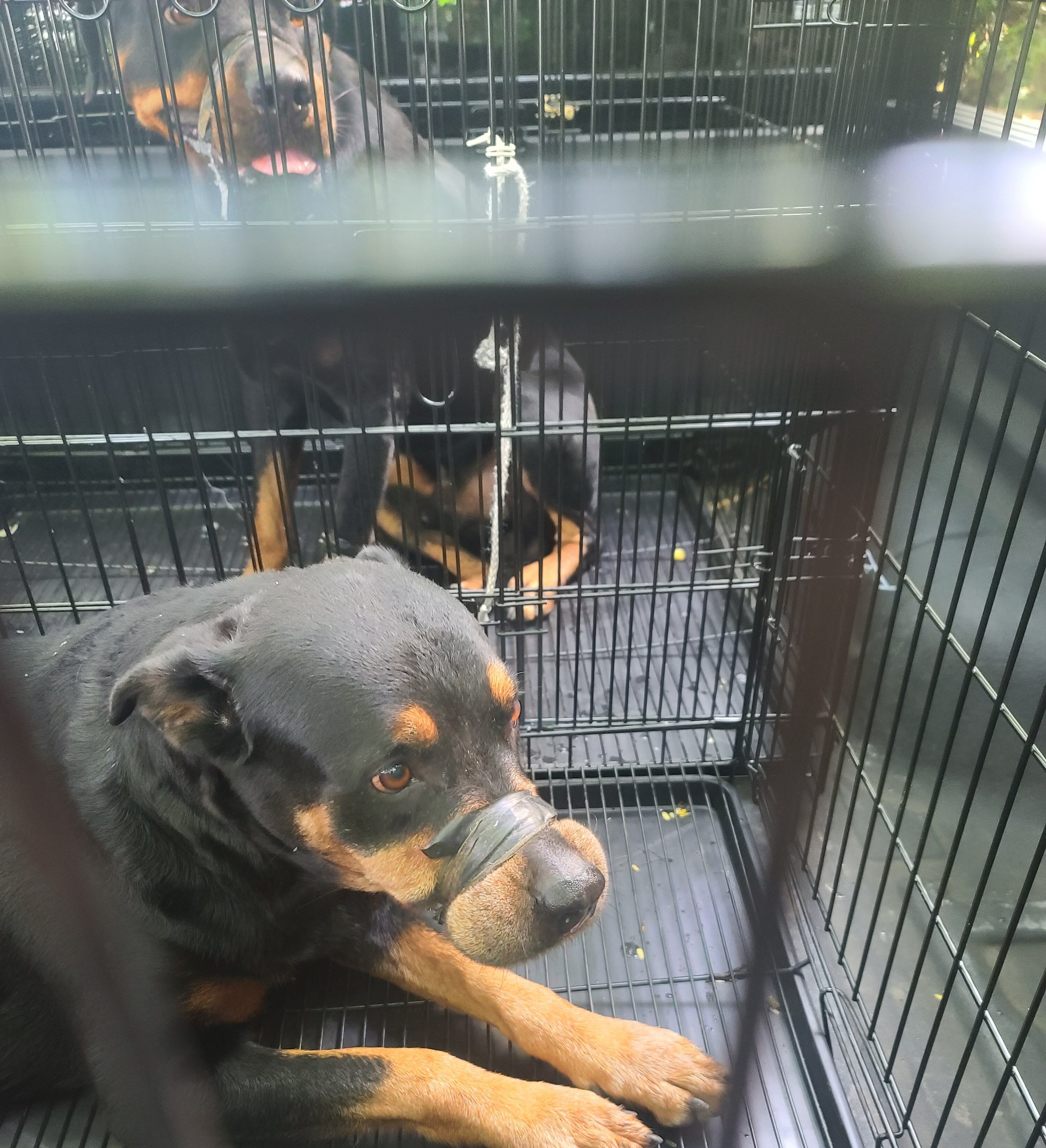 Según indicó la querellante, un individuo abandonó tres perros de la raza Rottweiler amordazados con cinta adhesiva color negro. Dos de los canes pudieron ser capturados y se les brindó la atención necesaria.