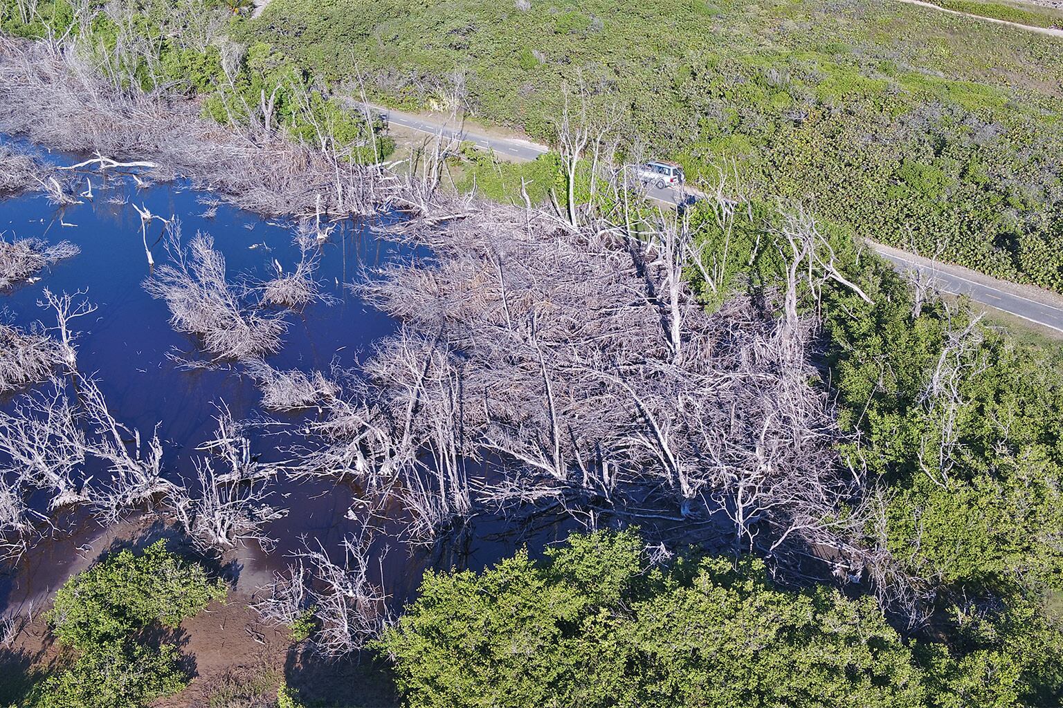 “[Los manglares] se están desintegrando, literalmente, por la descomposición natural, y no hay regeneración de la vegetación excepto en algunas áreas de sus alrededores”, comentó Mayer.