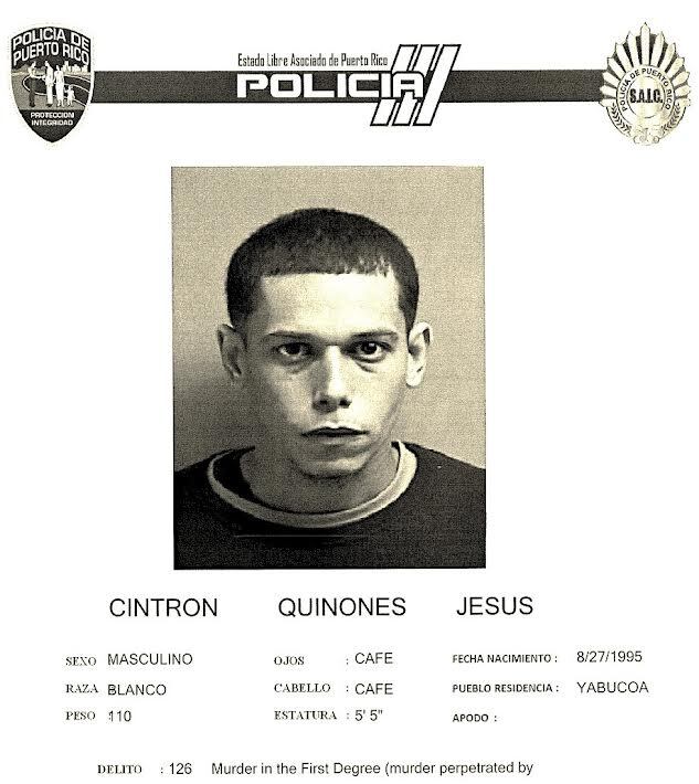 Según el informe de la policía, el hombre fue identificado como Jesús J. Cintrón Quiñones de 27 años y vecino de Yabucoa contra quien pesaban cargos de asesinato, Ley de Armas y Ley 54 (maltrato psicológico, maltrato físico y amenaza).