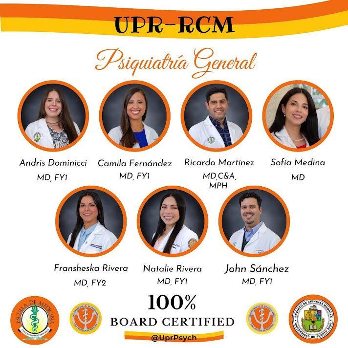 Los residentes de psiquiatría general que obtuvieron este logro fueron: Andris Dominicci, Camila Fernández, Ricardo Martínez, Sofía Medina, Francheska Rivera, Natalie Rivera y John Sánchez.