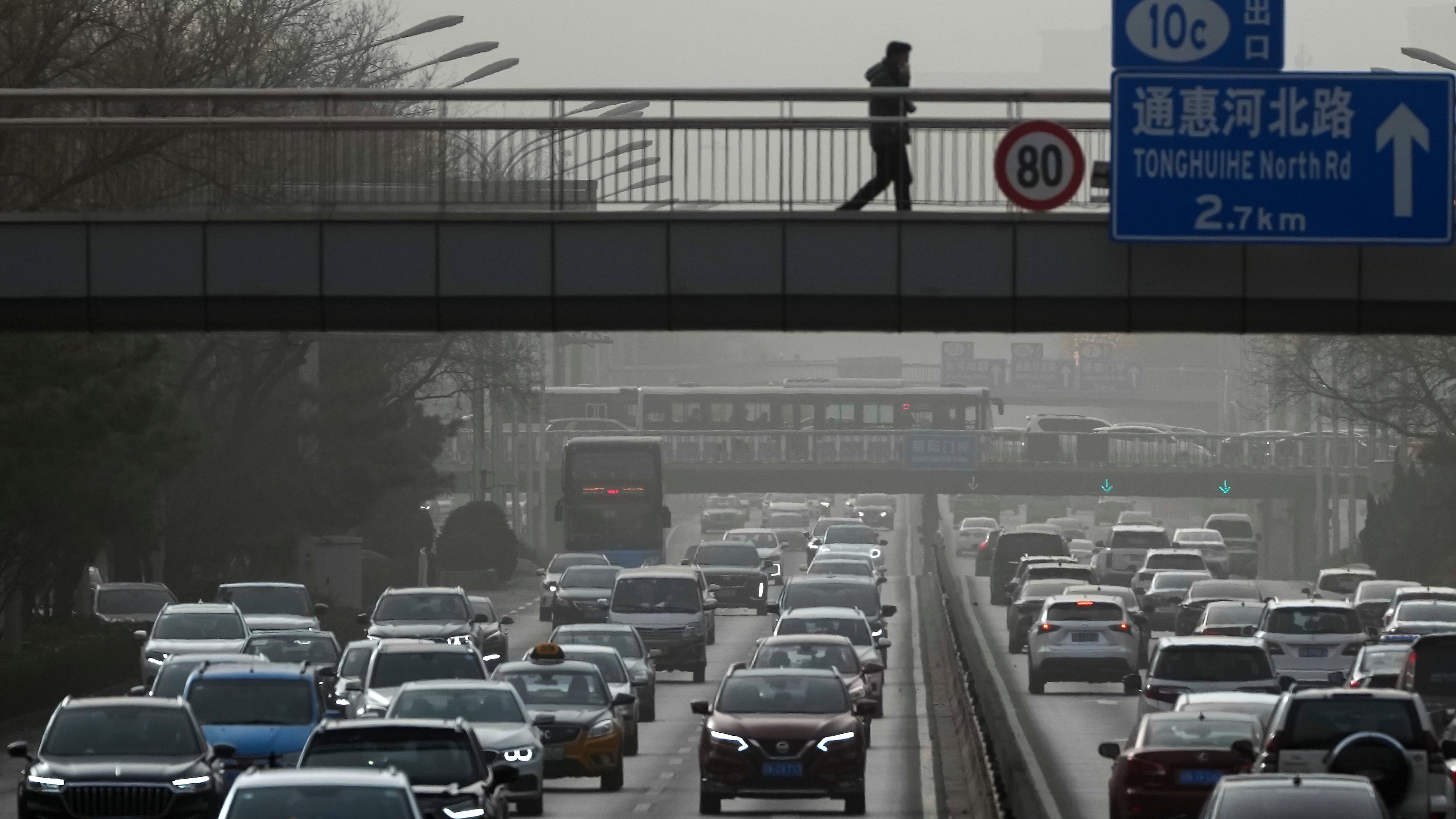 Vehículos circulan el lunes 12 de diciembre de 2022 por una avenida de Beijing durante una tormenta de arena. (AP Foto/Andy Wong) AP (Andy Wong/AP)