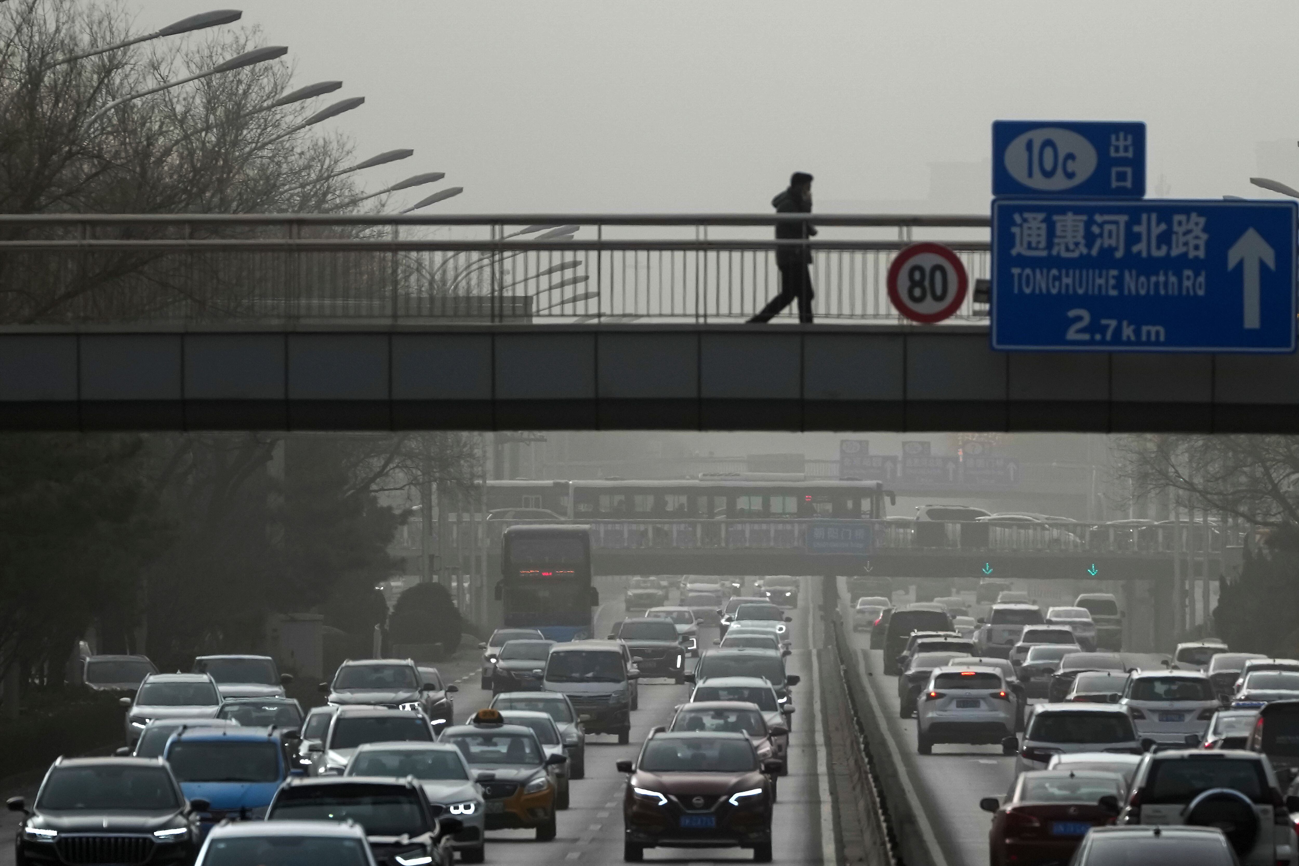 Vehículos circulan el lunes 12 de diciembre de 2022 por una avenida de Beijing durante una tormenta de arena. (AP Foto/Andy Wong) AP (Andy Wong/AP)
