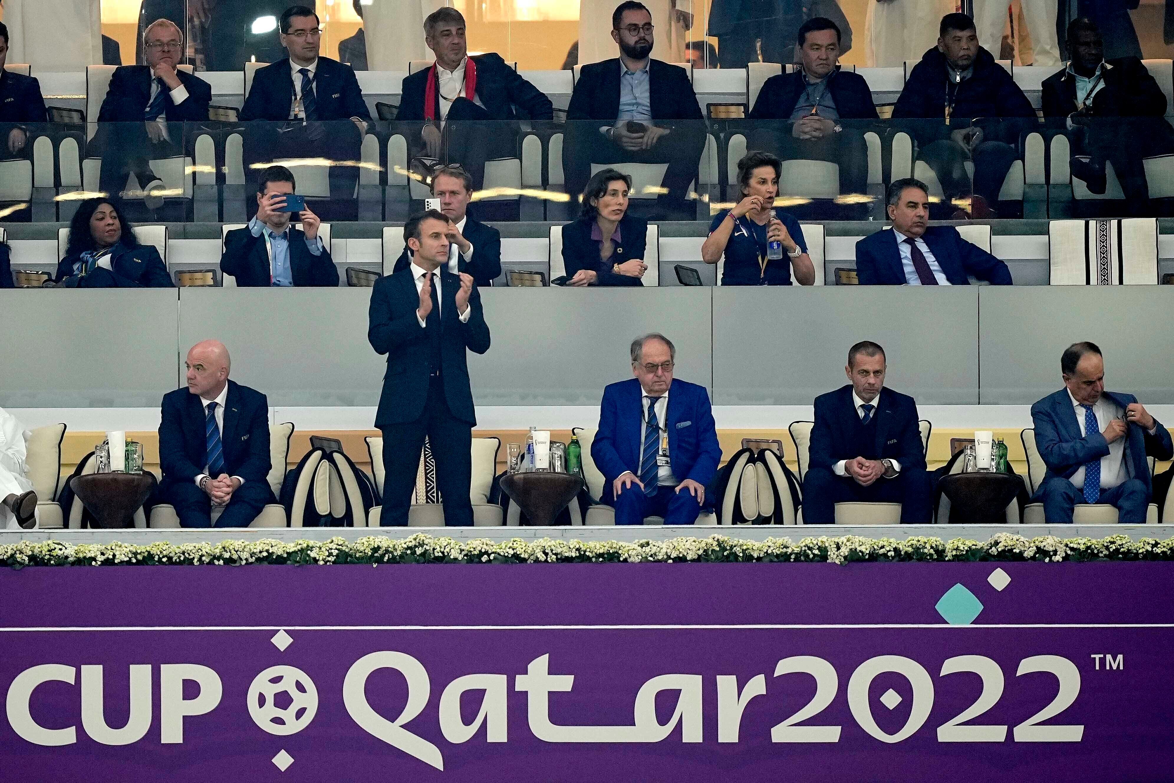 Macron estuvo sentado junto al presidente de la FIFA Gianni Infantino en el duelo en el Estadio Al Bayt y se levantó para aplaudir tras la victoria 2-0. Francia enfrentará a Argentina el domingo en la final.