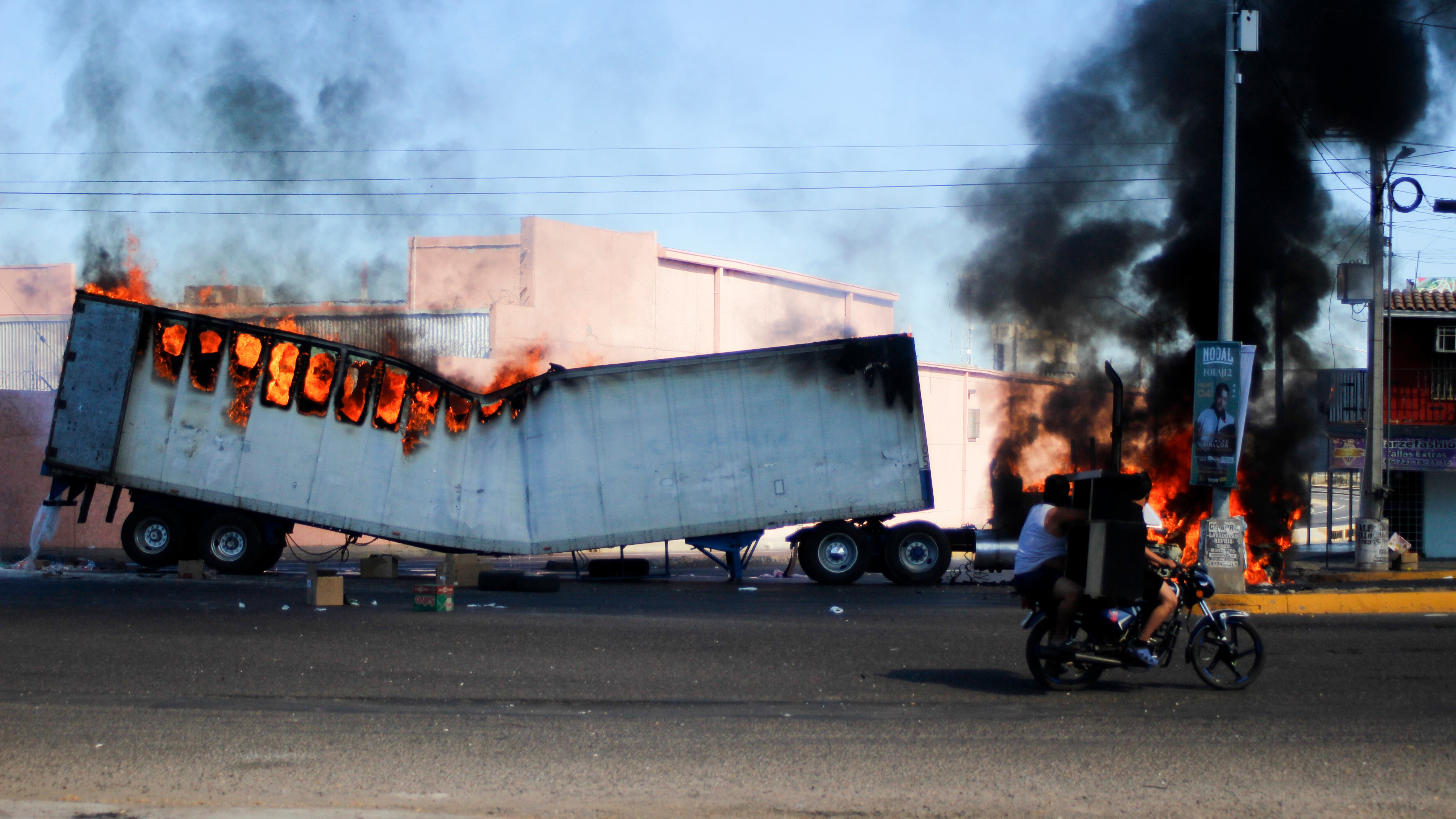 Todas las entradas a la ciudad estaban bloqueadas y en otras partes de Sinaloa se vivían situaciones similares.