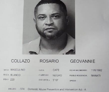 Las autoridades presentaron ayer, lunes, cargos criminales por el delito de maltrato de la Ley 54 y violación a la Ley de Armas, (portación, transportación o uso de arma de fuego sin licencia), (portación y uso de armas blancas) y (disparar o apuntar un arma de fuego), contra un hombre, identificado como Geovannie Collazo Rosario, de 40 años y residente de Manatí.