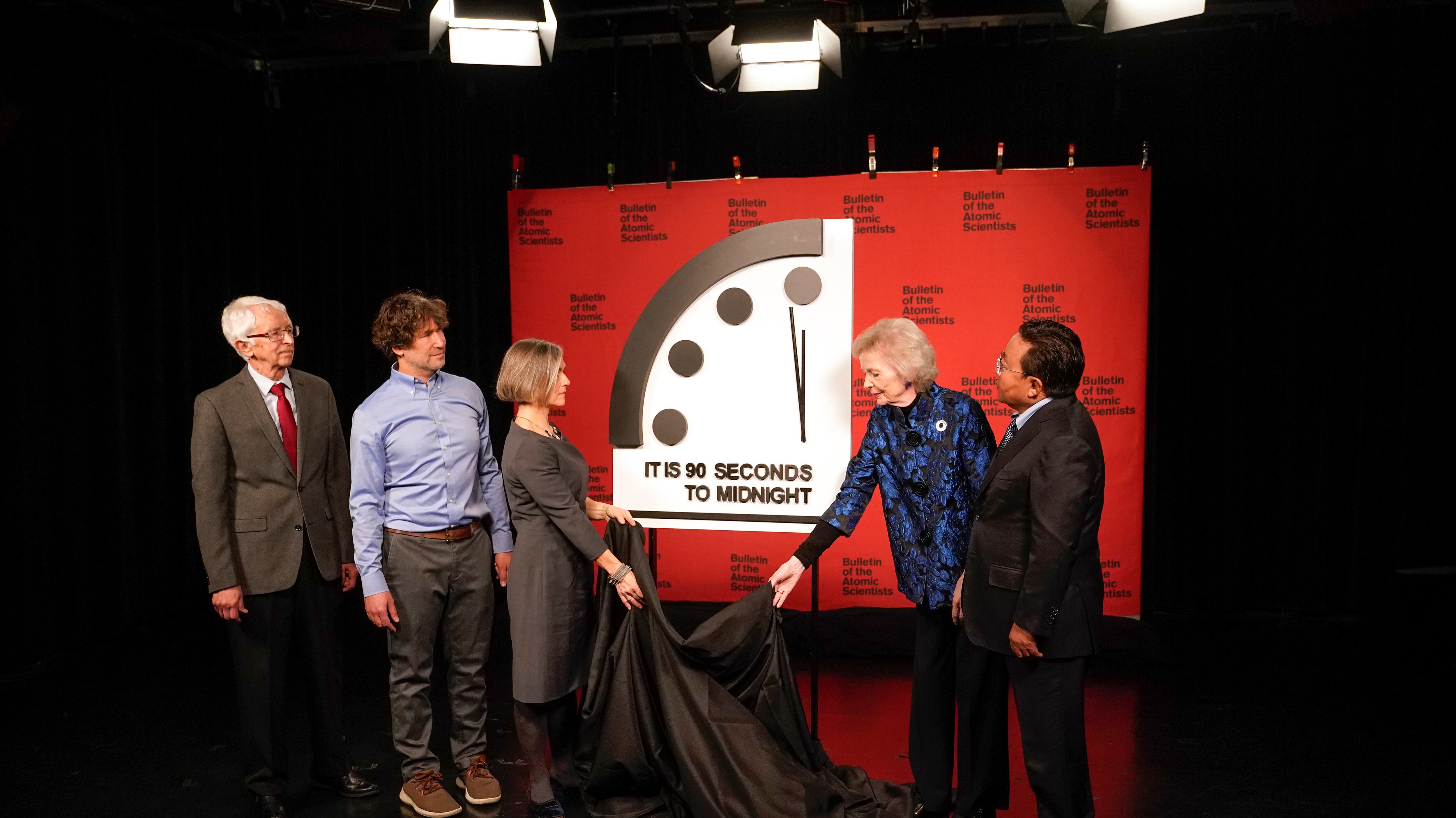 Desde 1947, el grupo utiliza un reloj para simbolizar el potencial y las probabilidades del fin de la humanidad. Esta vez se adelantó la cuenta regresiva 10 segundos más que el año pasado, con lo cual está a su punto más cercano al 12 jamás registrado.
