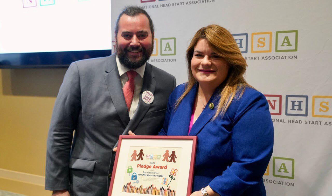 La Asociación Nacional de Head Start le otorgó el NHSA Pledge Award (Premio al Compromiso) a la comisionada residente, Jenniffer González Colón, por haber demostrado un firme compromiso en cumplir con el propósito de Head Start y de servir a los niños más vulnerables de toda nación y a sus familias, no solo en su distrito, sino en todo alrededor de la nación.